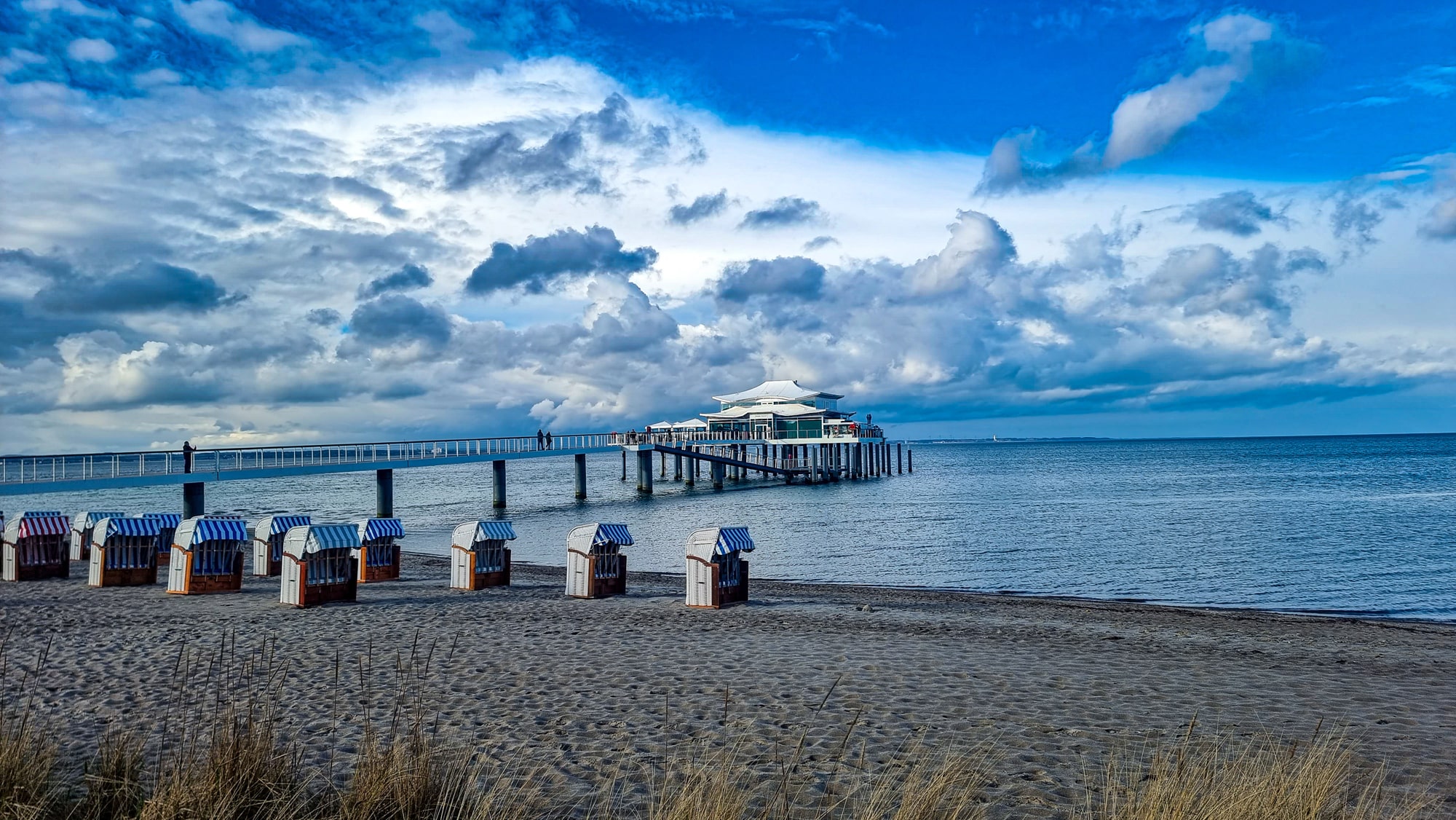 Annähernd am Ende der ca. zwei Kilometer langen Promenade liegt die 2014 fertiggestellte Seebrücke, die einen herrlichen Blick auf das offene Meer bietet.